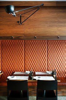 Be inspired to think textile for the wall, namely leather or a great faux leather.